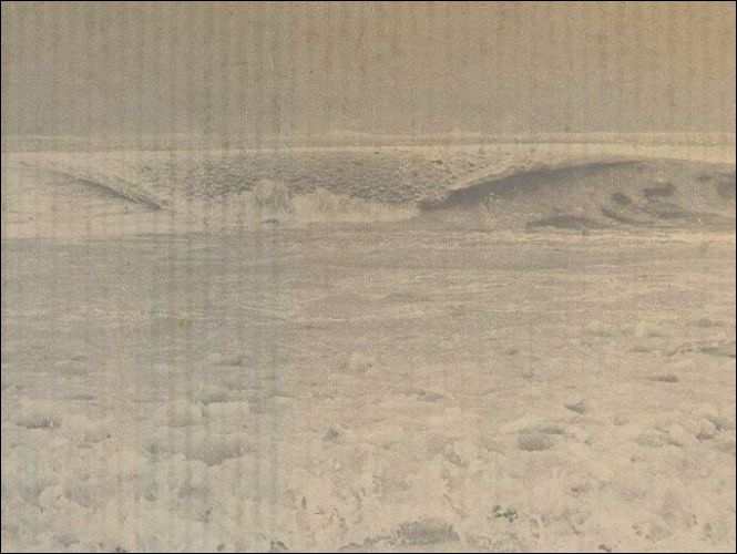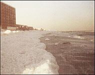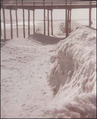 ![]() Large chunks of ice carried on the wave and into the tidal surf |