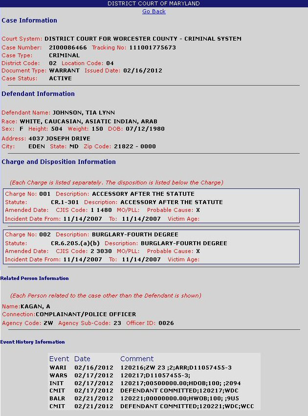 February 17, 2012 - Tia Johnson and Junior Jackson have both been arrested by the Worcester Bureau of Investigation for being accessories in the murder of Christine Sheddy. Jackson is the cousin of Justin Hadel, who was convicted in Sheddy's murder last year. Both Jackson and Johnson lived at the Pocomoke farm where Sheddy was killed and allegedly helped to hide her body. They each are charged as accessories after the fact and burglary. Both Jackson and Johnson are being held without bond at the Worcester County Detention Center.
